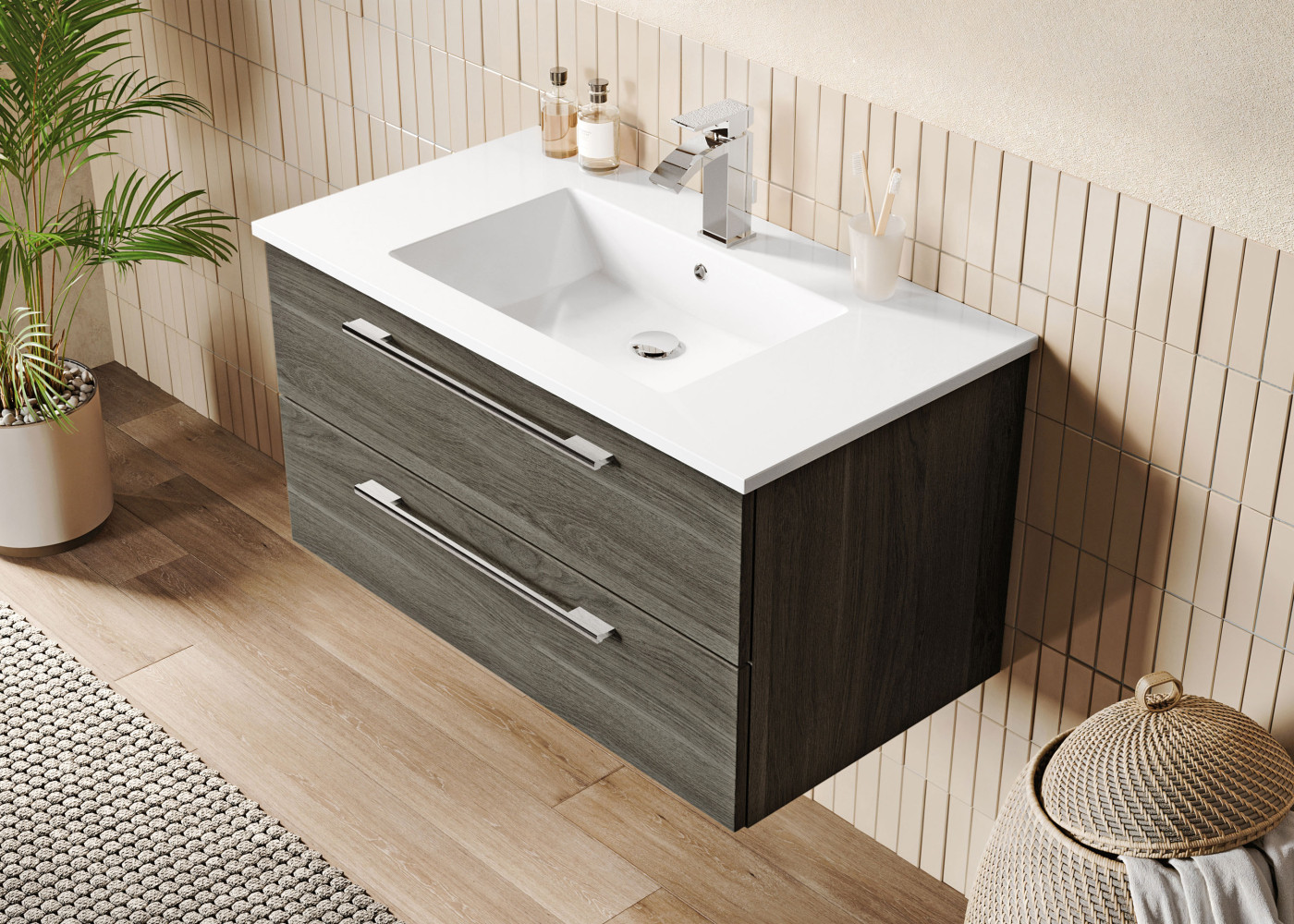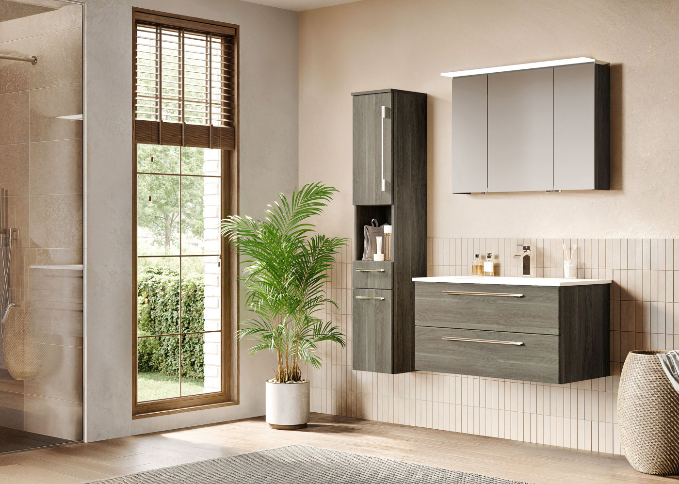 Inklusive Türen mit Dämpfungssystem und LED-Flächenleuchte. Ohne Armatur und Dekoration.