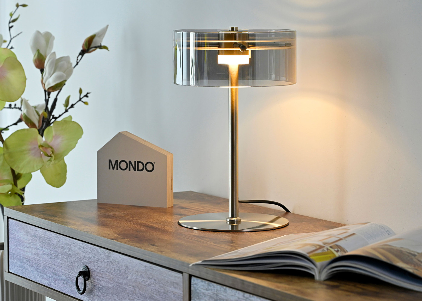 Die Leuchtenserie Mondo Karena verbindet modernes Design mit angenehmer Lichtqualität und hohem Wohnkomfort. Der edle Glas-Schirm mit Ø 200 mm und klare Linien sorgen für ein harmonisches Erscheinungsbild. Dank Dimmfunktion lässt sich das Licht individuell an jede Stimmung anpassen - perfekt für vielseitige Wohnkonzepte. Erhältlich in den Farben schwarz und stahl.