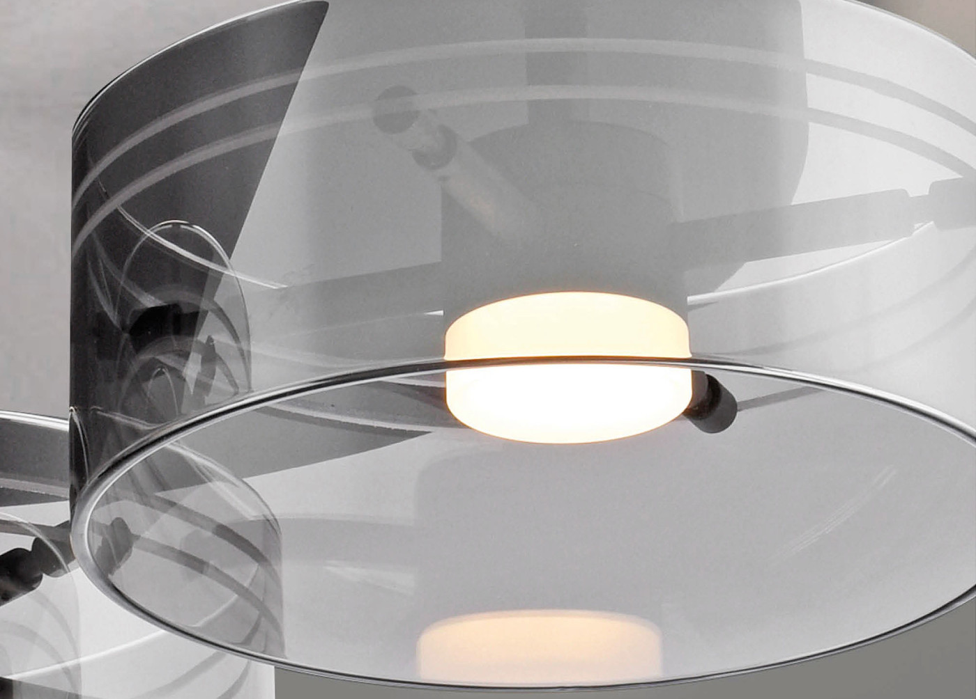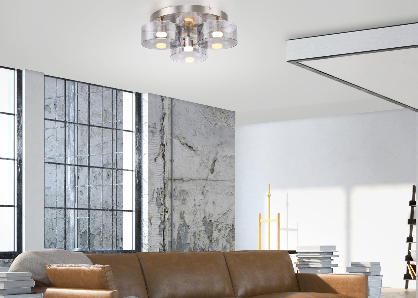 Deckenleuchte aus Stahl mit Glas-Schirm Ø 200 mm, 3×LED-Boards je (9 W, 3000 K), dimmbar.