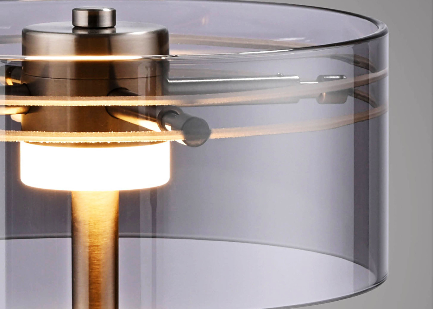 Tischleuchte aus Stahl mit Glas-Schirm Ø 200 mm, 1× LED-Board (9 W, 3000 K), dimmbar.