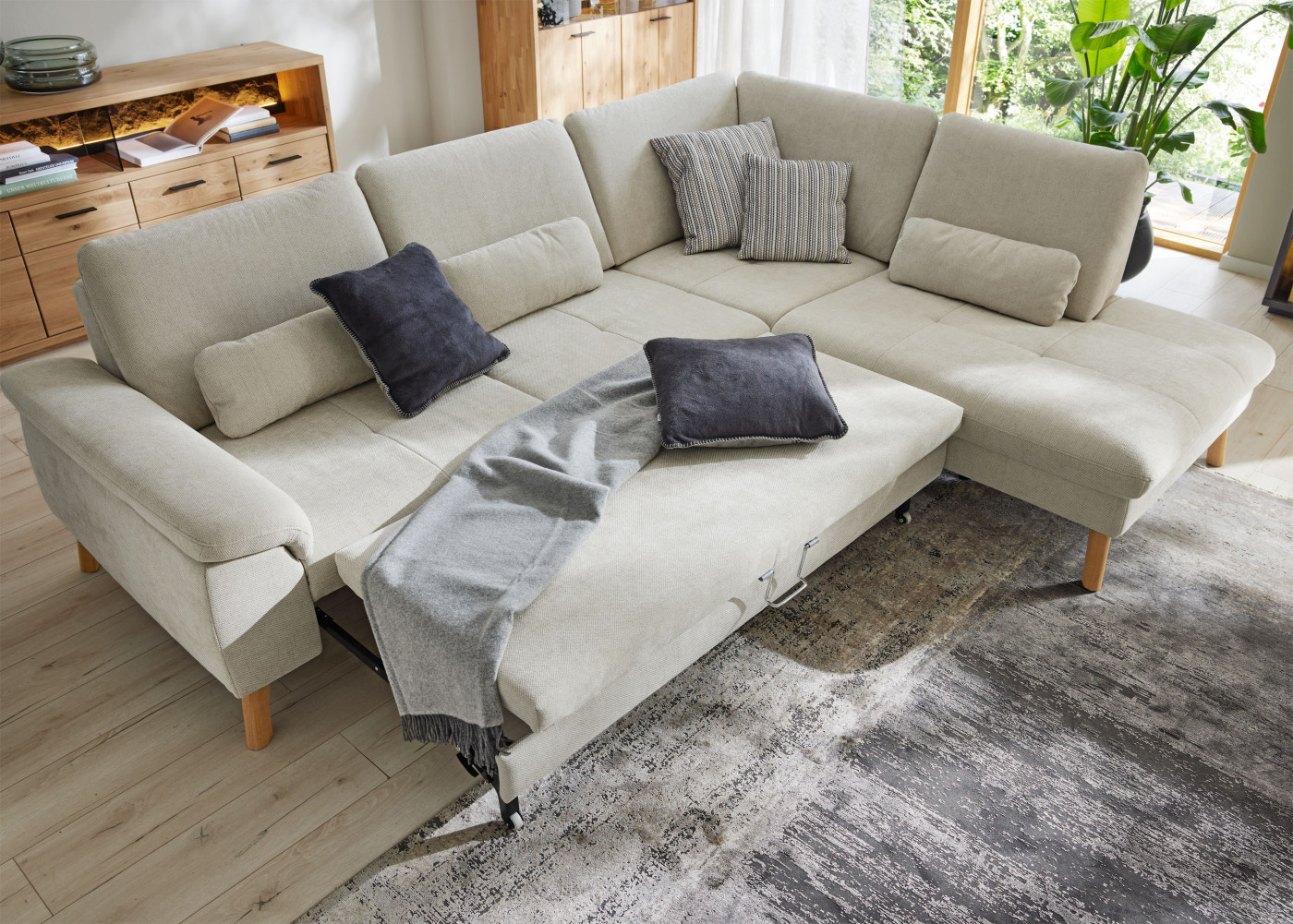 MONDO Livento heißt dieses moderne Polstermöbelprogramm mit individuellen Komfortfunktionen. Mit zwei Sitzqualitäten - wahlweise Kaltschaum oder Federkern - lässt sich der Komfort perfekt auf die persönlichen Bedürfnisse abstimmen. Optional kann das Sofa mit Funktionen wie Sitztiefenverstellung, Armteilverstellung oder verschiedenen Bettgrößen ausgestattet werden. Eine große Farb- und Bezugsauswahl runden das Programm ab.